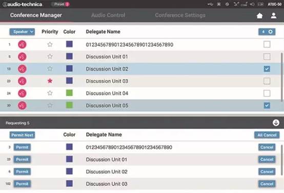ATUC-50為您解決。它具備自由發(fā)言、請(qǐng)求發(fā)言、遠(yuǎn)程控制三種會(huì)議模式,讓您輕松發(fā)言!
